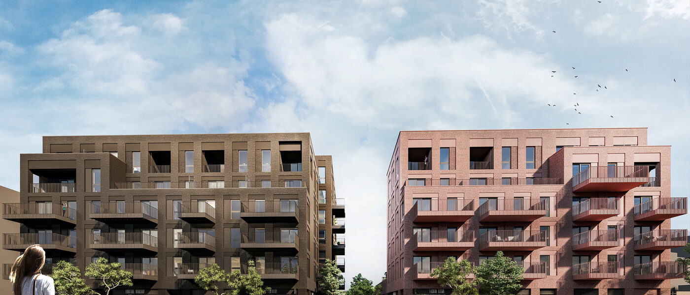 Oscillating between a London-factory look and extreme modernity, the proposed materials address the two different uses: deep grey coloured render and critical-style doors for the commercial podium, delicate brick patterns and steel balconies for the residential above.