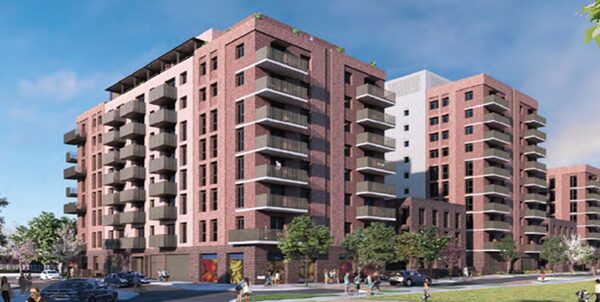 The works include the design, construction and completion of 5 buildings of varying heights of 3, 7, 9 and 11 stories to provide 209 new homes and a commercial floorspace area to the ground floor South West corner.